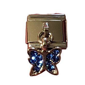 Blue Dangle Butterfly 9mm Italian Charm Bracelet link, Unisex