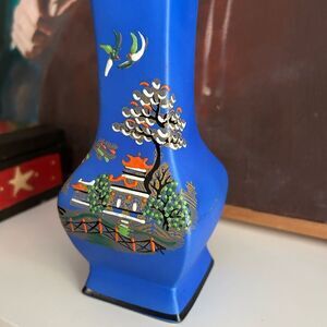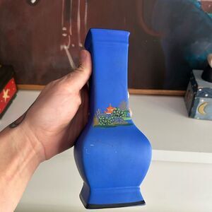 Enhance your home decor with this stunning blue decorative vase featuring intricate Asian art designs. Perfect for adding a touch of elegance to any room.