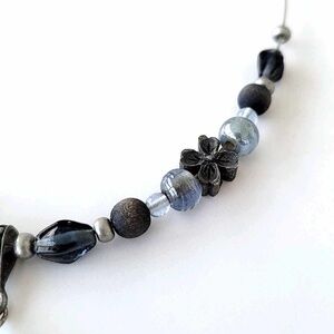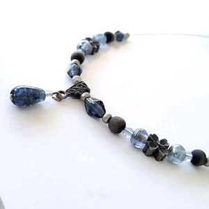 ๐๐ Blue Denim Multi-beaded On Silver Wire Chocker Necklace