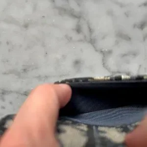 This is a pre-loved Blue Dior Oblique Jacquard Saddle Flap Card Holder. It is in overall great condition, but has a few very small yellow spots on the bottom corners and a faint crease on the inner flap (see pictures). The card holder comes with its original dust bag and box.