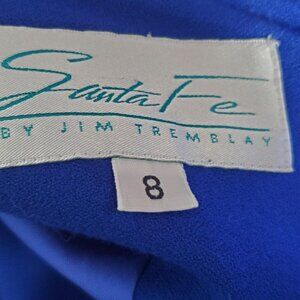 Blue dress with shutter pleats in front across the bodice and hips. Zipper closure and split hem in the back. Fully lined. Size 8.