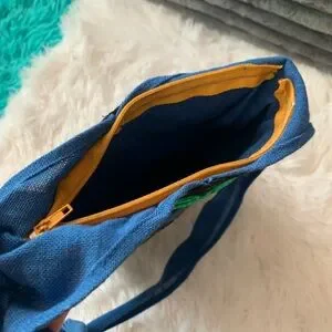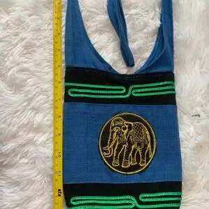 Stylish blue small bag with elephant embroidery