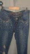 Stylish blue jeans with eye-catching embellishments. Perfect for a chic and trendy look.