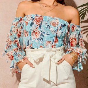 Blue Floral Off-Shoulder Top in M, L