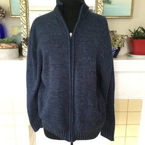 Blue Full Zip Knit Sweater Large 42 Chest cozy