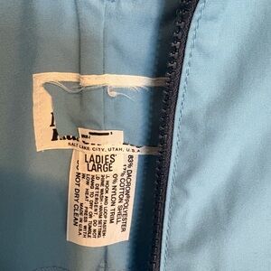 These are the most fun overalls ever - and I’m sad they no longer fit me. They are light bkue with the darker blue being a more cotton stretch material. The light blue isn’t stretchy. They are shorter in the legs and have stretchy cuffs at the bottom to fit over or on your calves.