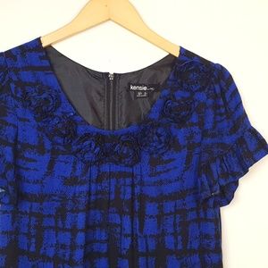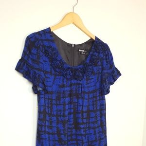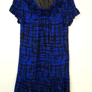 Description: Blue & Black Geometric Short Sleeve Top/Dress With Ruffles & Roses