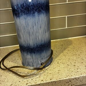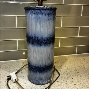 Bring a warm, modern statement into your space with this ceramic blue and white drip-glaze table lamp. The cylindrical silhouette and vertical ombré glaze give it the perfect mix of mid-century modern, Scandinavian, and coastal cottage style.
