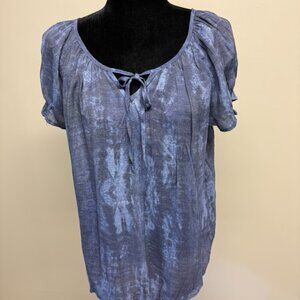 Blue Grey Blouse Short Sleeved Size LG EUC Washes and wears very well