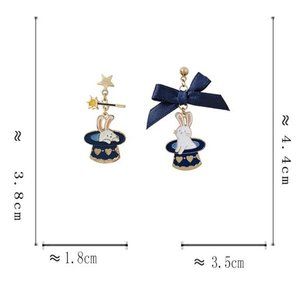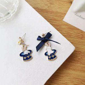 Blue Hat Bunny Earrings