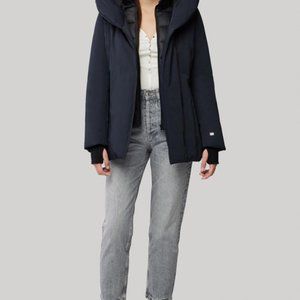 The modern, minimalist ANNALISA by SOIA & KYO is designed with a large face-framing hood, and nylon puffer bib and collar. Show off your feminine silhouette in this slim-fit style while staying warm and dry with details like rib storm cuffs with thumbholes, polar fleece lined pockets, and water-repellent exterior. Everyday functionality can look this elegant.