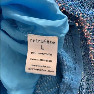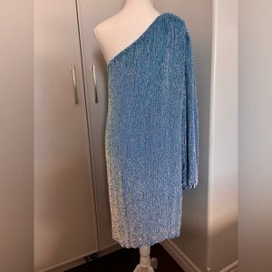 Quality blue sequin one shoulder Retrofete women’s dress. Excellent like new condition. Ballon sleeve. Quality dress. Lined.