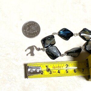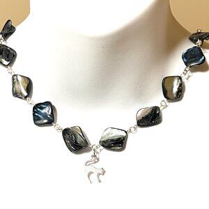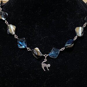 Blue Irregular Mother of Pearl Shell Necklace + Cute Slim Cat Pendant