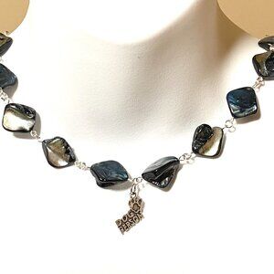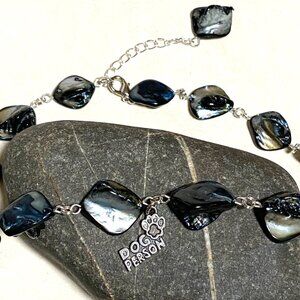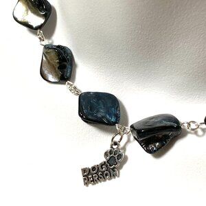 Blue Irregular Mother of Pearl Shell Necklace + Dog Person Paw Print Pendant