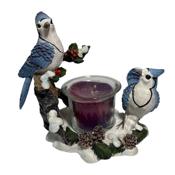 Blue Jay Christmas Candle Holder By Joelson Industries Resin Holly Berry Votive