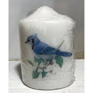 Blue Jay Pillar Candle White Bird Design Sealed Gift Bird Lovers 3" New Sealed