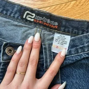 Just a pair of really flattering mid-waisted jeans. 5โ5 for height reference ๐๐ฆ nice darker wash indigo blue denim with some subtle stoned effects throughout. Size 28/31