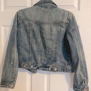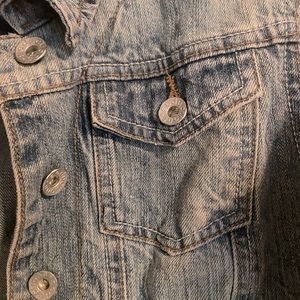 Sirens size x-small/small blue jean jacket with some acid wash design, button up and sleeve opening has adjustable buttons.