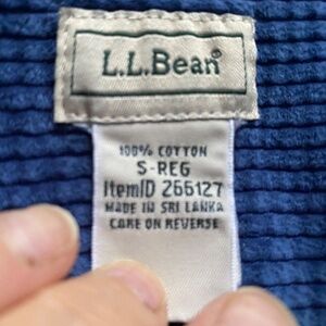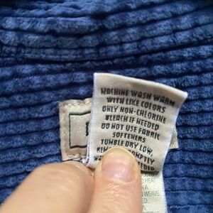 Deep blue corduroy shirt from LL Bean, unlined. Clean and no rips or tears. Worn sparingly in the house and ready to rotate for something new. In excellent condition.