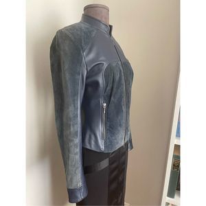 Blue Leather & Suede Jacket