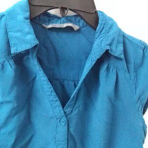 Size xs. Light fabric, ruched detail short sleeves. pair with vest for preppy look. Length 72cm across chest under arms about 45cm.