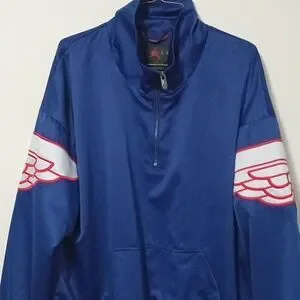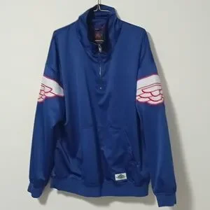 Stylish blue men's sweater with unique wing design on the sleeves. Perfect for casual outings.