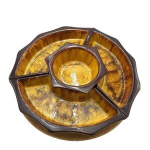 The Blue Mountain Pottery 5-piece Lazy Susan Serving Tray in "Harvest Gold" is a vintage Canadian ceramic item.