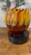 A stunning vintage Blue Mountain Pottery (BMP) vase or planter featuring a bold sculptural form with jagged, flame-like edges. The signature Canadian drip glaze blends rich brown tones with mustard yellow, creating a striking, earthy finish. Its versatile size makes it perfect as a statement planter, vase, or decorative centrepiece for mid-century or rustic interiors.