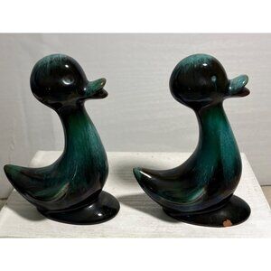 Blue Mountain Pottery Baby Duck Figures Green Black Drip Glaze 5.5" Tall Canada