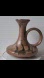 The chamberstick design includes a wide, flat base and a handle for carrying the lit candle.