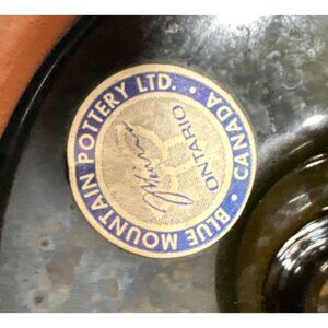 This pair of vintage candlestick holders exhibits a stunning green and black glaze, crafted by Blue Mountain Pottery in Canada. Their elegant design and high-quality ceramic material make them a distinguished addition to any decor. They measure 3.5 inches in diameter, showcasing a classic style.