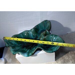 Blue Mountain Pottery Dish Leaf Shaped Candy Trinket Green Drip Glaze 14 x 10"