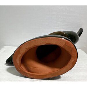 This exquisite Blue Mountain Pottery dolphin figurine stands at 6.75 inches tall. Featuring a captivating green and black drip glaze, it's a perfect addition to any collection or home decor, showcasing elegance and craftsmanship.