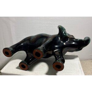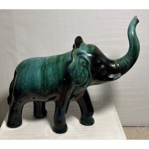 Blue Mountain Pottery Elephant Figure Green & Black Drip Glaze 8" Canada READ