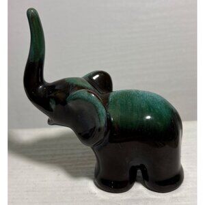 Blue Mountain Pottery Elephant Figure Green & Black Glaze 4.75" Tall Canada MCM