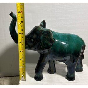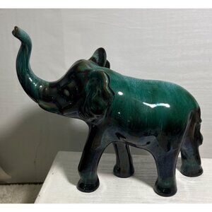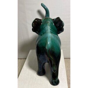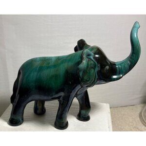 Blue Mountain Pottery Elephant Figure Large 8" Tall Green Black Drip Glaze MCM