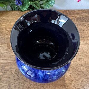 This beautifully crafted flared-rim vase from Blue Mountain Pottery features their signature cobalt drip glaze, blending into deep black with a glossy finish. With its classic rounded base and dramatic flare, it’s a standout piece for any collector of mid-century Canadian ceramics.