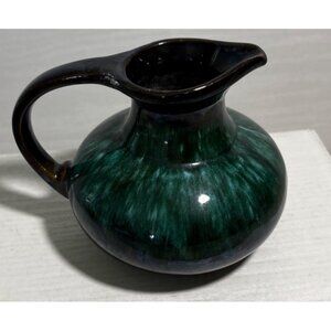 This handcrafted ceramic pitcher features a striking green and black glaze, showcasing expert artistry. Its compact size is ideal for serving or decor.