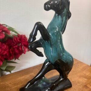 Blue Mountain‎ Pottery Rearing Horse Figurine Canadian Vintage Green Black Glaze