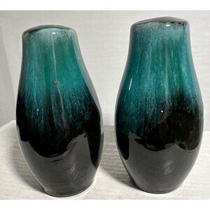 Blue Mountain Pottery Salt & Pepper Shakers Vtg 4" Tall MCM Green Drip Glaze