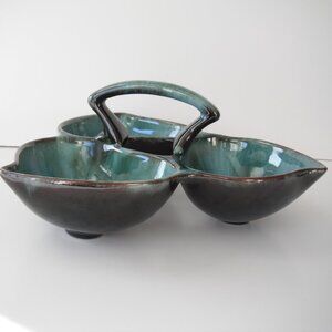 Blue Mountain Pottery Triple Sectioned Serving Dish with Handle Green/Black