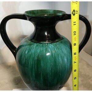 Blue Mountain Pottery Vase BMP Green Drip Glaze Double Handled MCM 12" Vintage