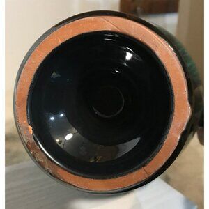 This vintage Blue Mountain Pottery ceramic vase boasts an elegant green and black color scheme and a timeless double-handled design, making it a sophisticated addition to any decor.