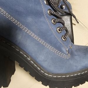 Blue Nappa Leather Upper Heels 4 inches Boots Booties Lace size 9