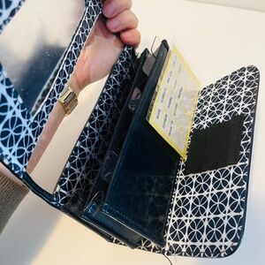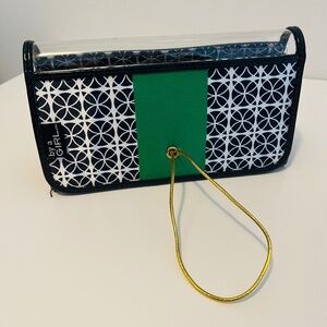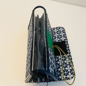 Blue New Travel Cosmetic Bag with Elastic Band Closure with Mirror and Transparent Top