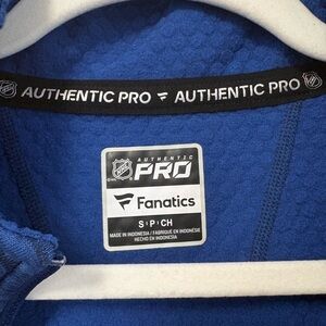 Blue Fanatics hoodie with Authentic Pro label. Soft and cozy.