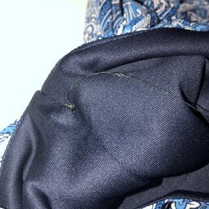 Patterned blue mini dress size medium from Forever 21. Navy blue slip attached underneath and adjustable straps. A few loose threads on the inside of lining and on the hem. I am also 5’2 and consider this dress to be quite short!