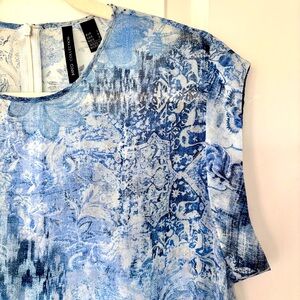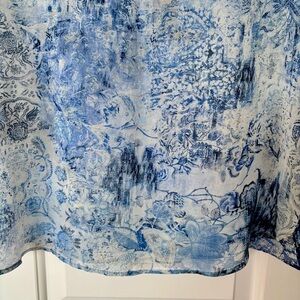 Stylish sleeveless top with a blue and white pattern. Perfect for casual outings. Chest 106cm Shoulder to shoulder 45cm Length 68cm