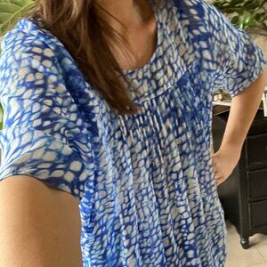 Stylish and vibrant blue patterned women's top. Perfect for any occasion.
