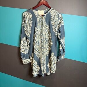 Stylish blue patterned tunic perfect for any occasion. Comfortable and chic, this top is a must-have for your wardrobe.